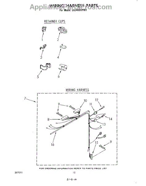 Parts for Whirlpool LA3400XPW1: 08 - Wiring Harness Parts