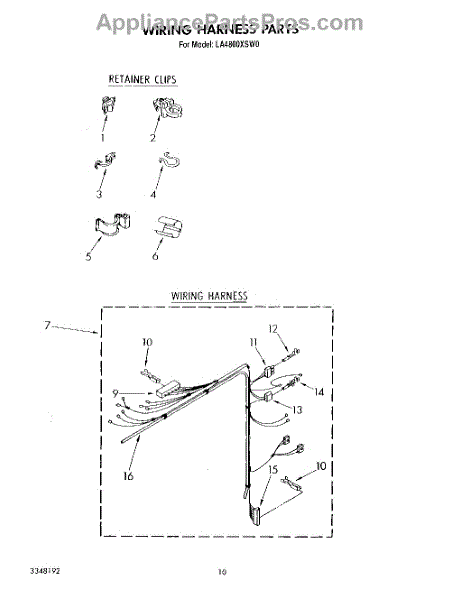 Parts for Whirlpool LA4800XSW0: 08 - Wiring Harness Parts