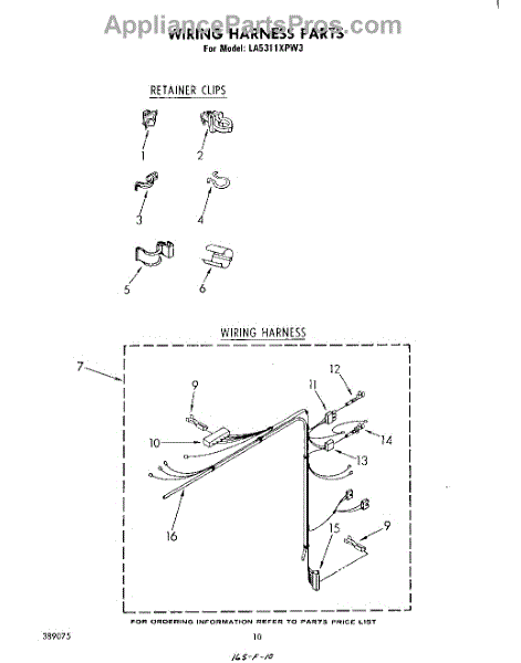 Parts for Whirlpool LA5311XPW3: 08 - Wiring Harness Parts