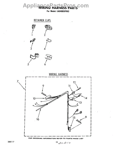 Parts for Whirlpool LA5400XPW3: 08 - Wiring Harness Parts