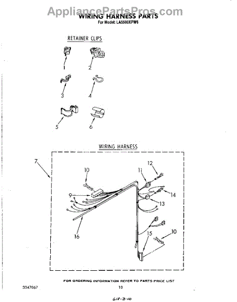 Parts for Whirlpool LA5500XPW6: 08 - Wiring Harness Parts