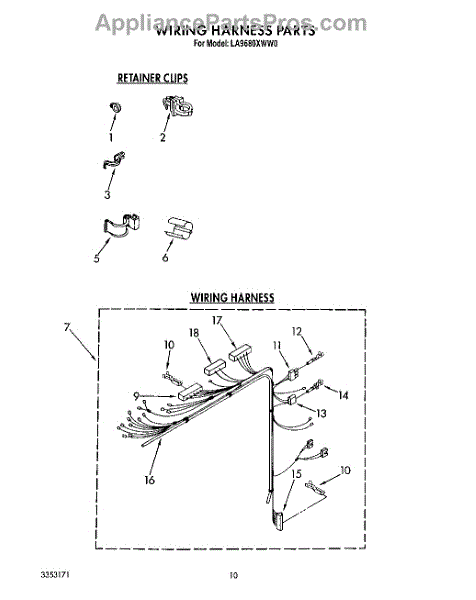 Parts for Whirlpool LA9680XWG0: 08 - Wiring Harness Parts