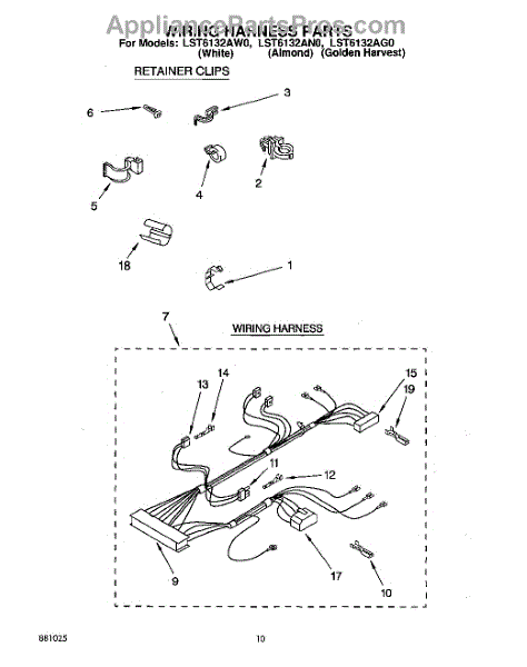 Parts for Whirlpool LST6132AW0: 08 - Wiring Harness Parts
