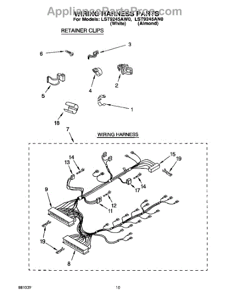 Parts for Whirlpool LST9245AW0: 08 - Wiring Harness Parts
