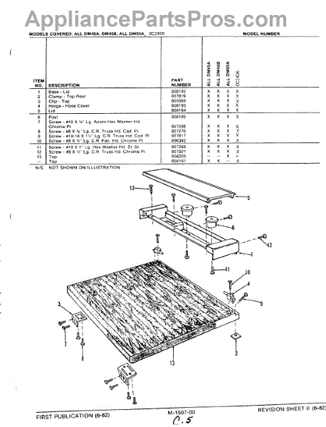 This factory screw secures appliance components to their mounting points. Replace missing, worn, or stripped hardware to restore a tight fit, proper alignment, and quieter operation across the affected assembly.