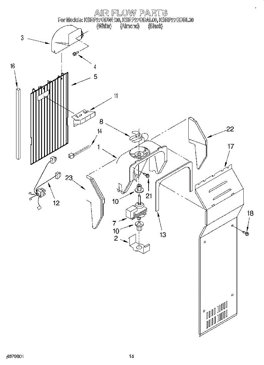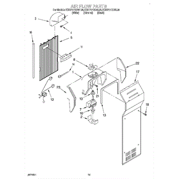 This fan scroll is the plastic housing that surrounds the evaporator fan in the freezer section. It directs air across the evaporator coils and into the ducts, helping your refrigerator move cold air evenly and maintain stable temperatures.