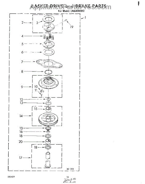 Parts for Whirlpool LHA4000W2: 09 - Basket Drive And Brake Parts