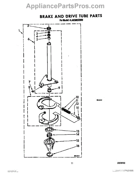 Parts for Whirlpool 4LA6300XXW0: 09 - Brake And Drive Tube Parts