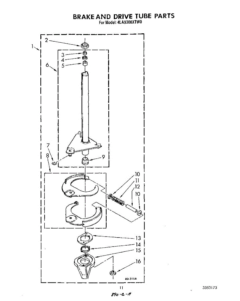 Parts for Whirlpool 4LA9300XTW0: 09 - Brake And Drive Tube Parts