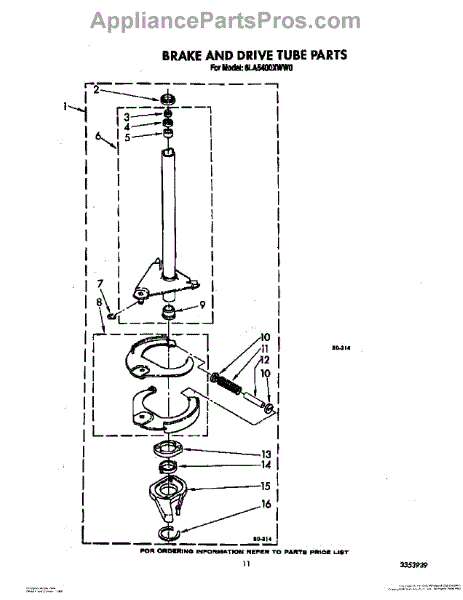 Parts for Whirlpool 6LA5400XWG0: 09 - Brake And Drive Tube Parts