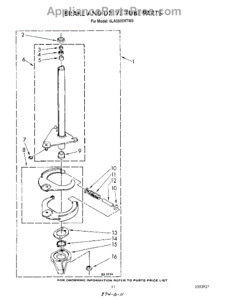 Parts for Whirlpool 6LA5800XTF0: 09 - Brake And Drive Tube Parts