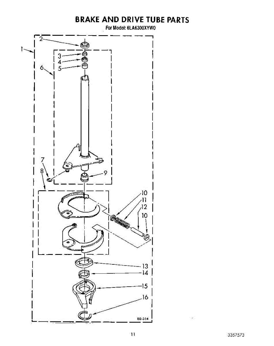 Parts for Whirlpool 6LA6300XYW0: 09 - Brake And Drive Tube Parts