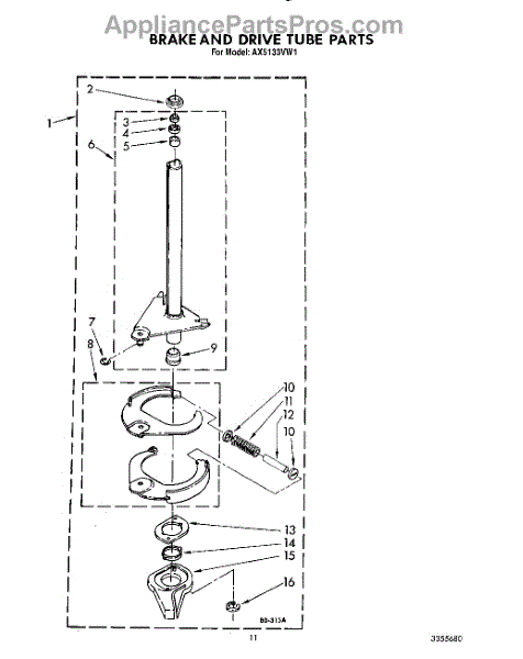 Parts for Whirlpool AX5133VL1: 09 - Brake And Drive Tube Parts