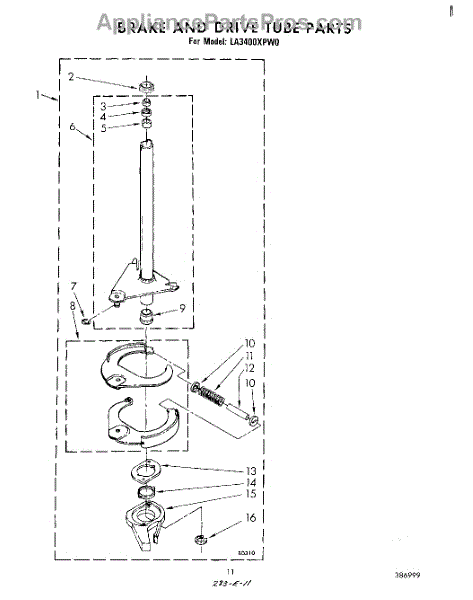 Parts for Whirlpool LA3400XPW0: 09 - Brake And Drive Tube Parts