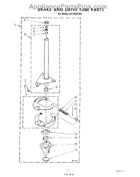 Parts for Whirlpool LA5100XTW0: 09 - Brake And Drive Tube Parts