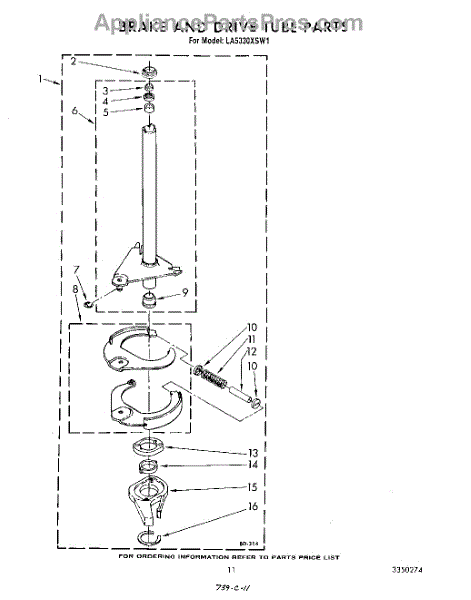 Parts for Whirlpool LA5330XSW1: 09 - Brake And Drive Tube Parts