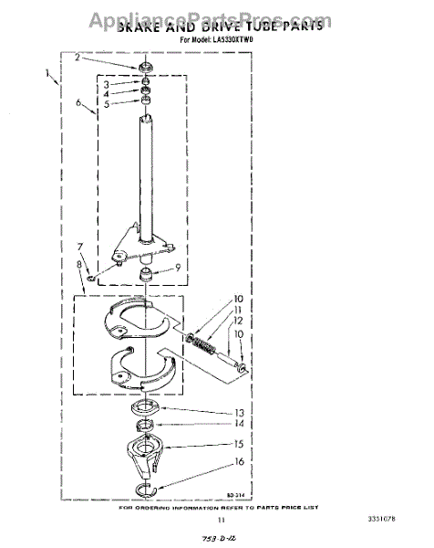 Parts for Whirlpool LA5330XTM0: 09 - Brake And Drive Tube Parts