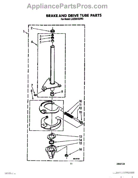 This brake release cam works with the washer's brake assembly to disengage the brake during spin and re-engage it at stop. Replacing a worn cam restores smooth basket spin and reduces squeal or grinding at spin transitions.