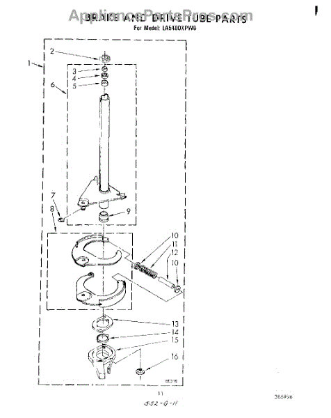 Parts for Whirlpool LA5400XPW0: 09 - Brake And Drive Tube Parts