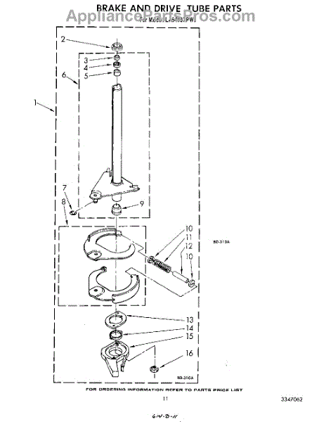 Parts for Whirlpool LA5400XPW5: 09 - Brake And Drive Tube Parts