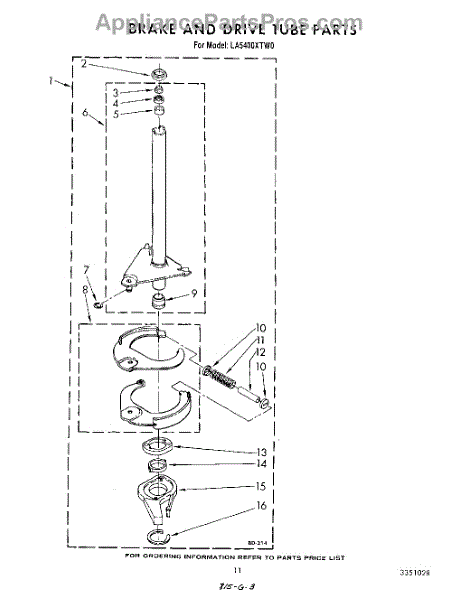 Parts for Whirlpool LA5400XTG0: 09 - Brake And Drive Tube Parts