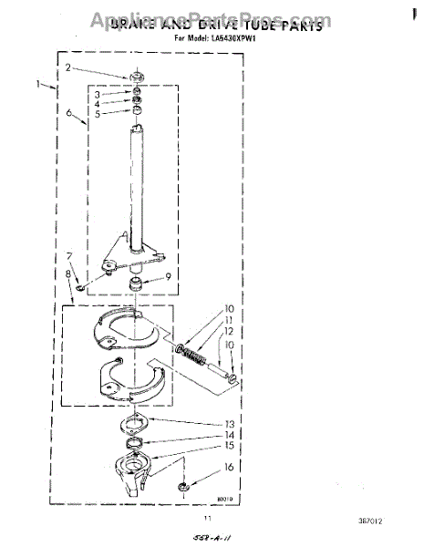 Parts for Whirlpool LA5430XPW1: 09 - Brake And Drive Tube Parts
