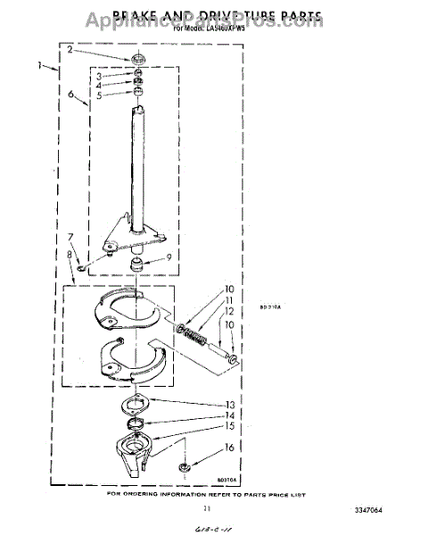 Parts for Whirlpool LA5460XPW5: 09 - Brake And Drive Tube Parts