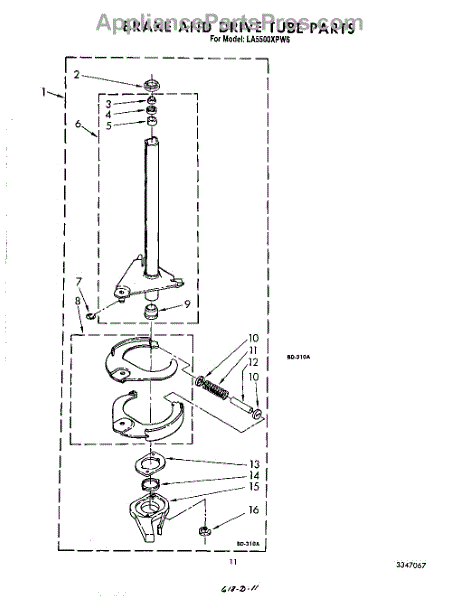 Parts for Whirlpool LA5500XPW6: 09 - Brake And Drive Tube Parts