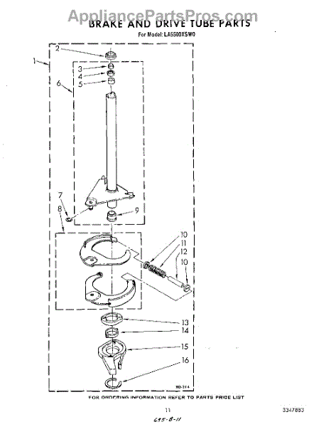 Parts for Whirlpool LA5500XSW0: 09 - Brake And Drive Tube Parts