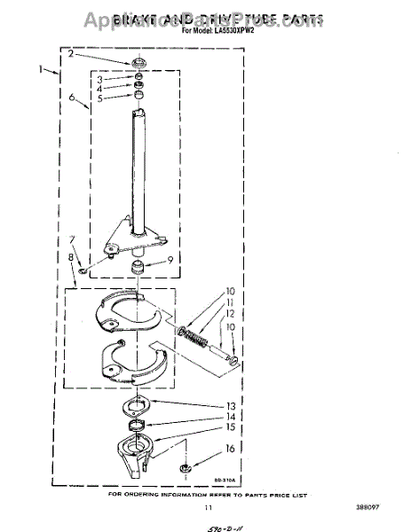 Parts for Whirlpool LA5530XPW2: 09 - Brake And Drive Tube Parts