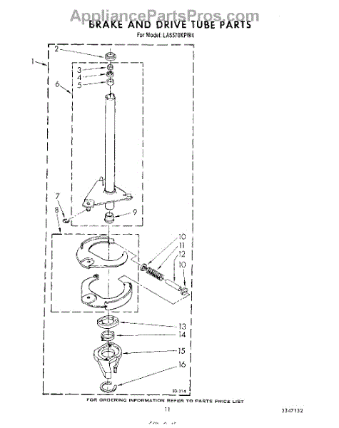 Parts for Whirlpool LA5570XPW4: 09 - Brake And Drive Tube Parts