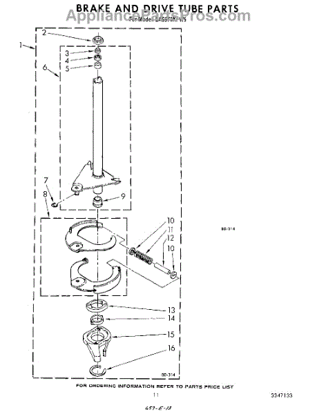 Parts for Whirlpool LA5570XPW5: 09 - Brake And Drive Tube Parts