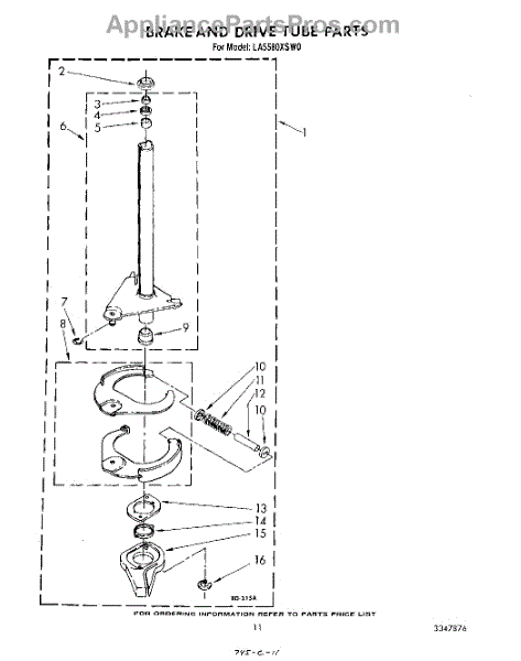 Parts for Whirlpool LA5580XSW0: 09 - Brake And Drive Tube Parts