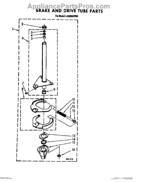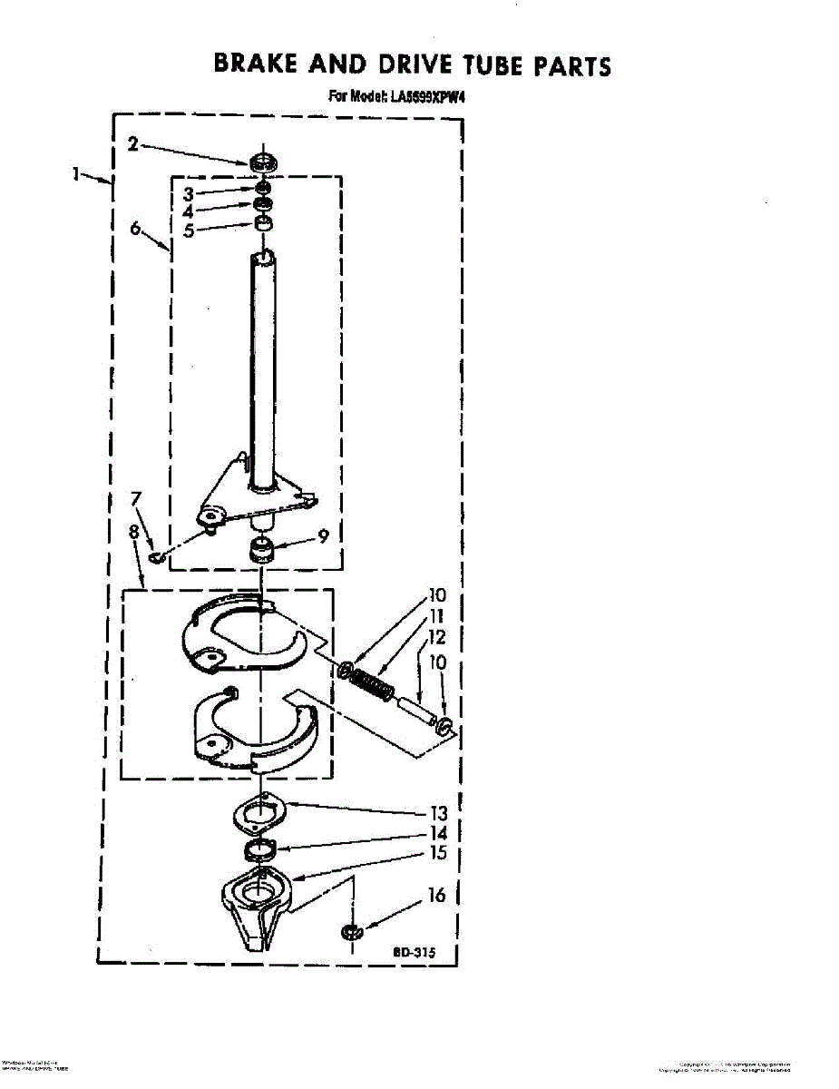 Parts for Whirlpool LA5599XPW4: 09 - Brake And Drive Tube Parts