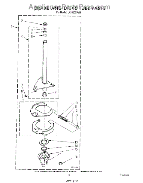 Parts for Whirlpool LA5600XPW6: 09 - Brake And Drive Tube Parts