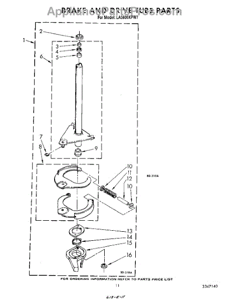 Parts for Whirlpool LA5600XPW7: 09 - Brake And Drive Tube Parts