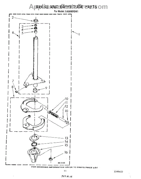 Parts for Whirlpool LA5668XSW1: 09 - Brake And Drive Tube Parts