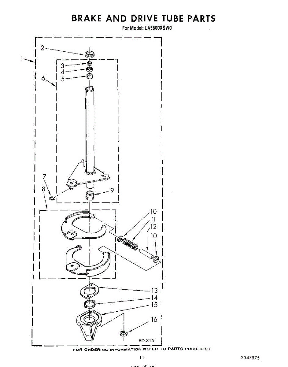 Parts for Whirlpool LA5800XSW0: 09 - Brake And Drive Tube Parts