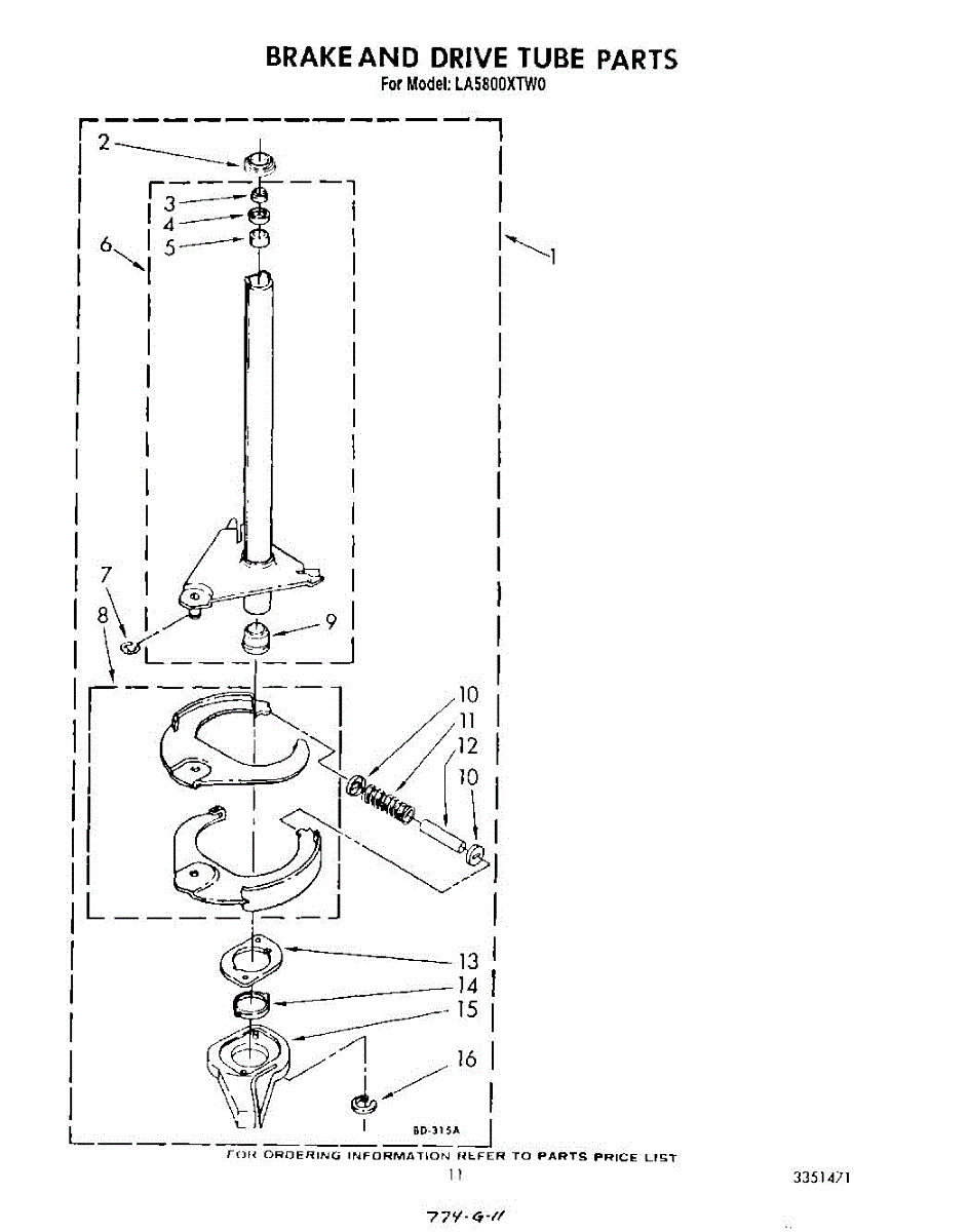 Parts for Whirlpool LA5800XTF0: 09 - Brake And Drive Tube Parts