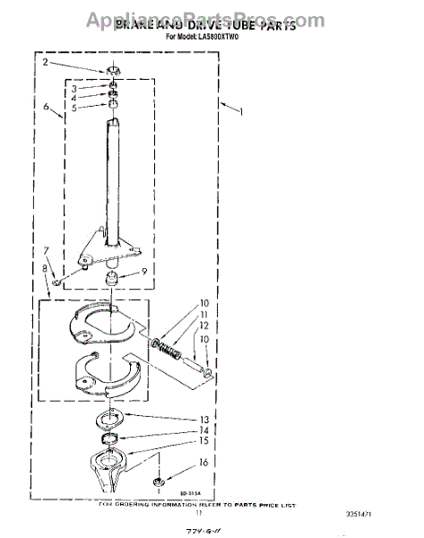 Parts for Whirlpool LA5800XTG0: 09 - Brake And Drive Tube Parts