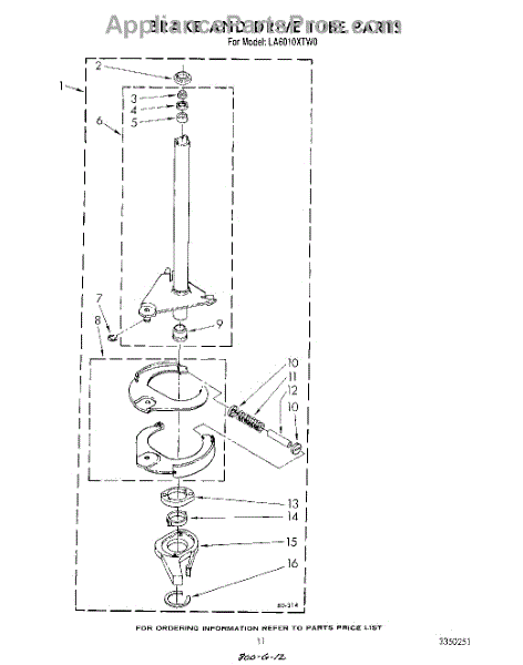 Parts for Whirlpool LA6010XTW0: 09 - Brake And Drive Tube Parts