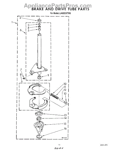 Parts for Whirlpool LA6055XTF0: 09 - Brake And Drive Tube Parts