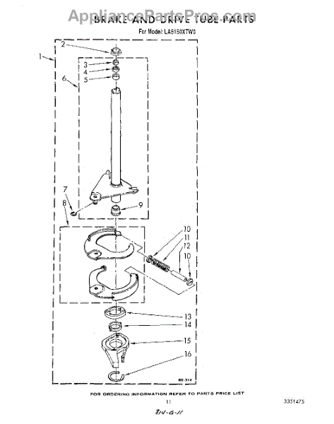 Parts for Whirlpool LA6150XTG0: 09 - Brake And Drive Tube Parts