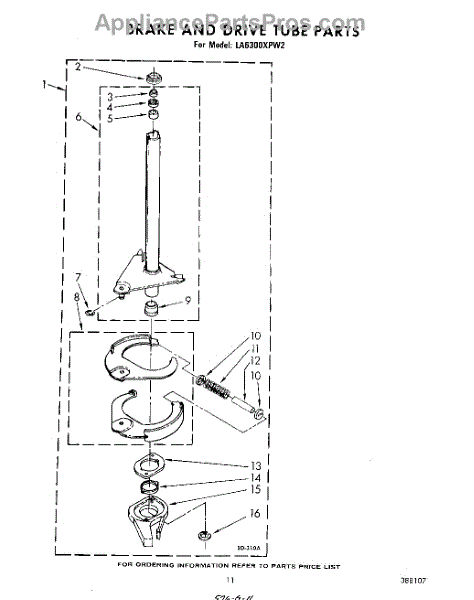 Parts for Whirlpool LA6300XPW2: 09 - Brake And Drive Tube Parts