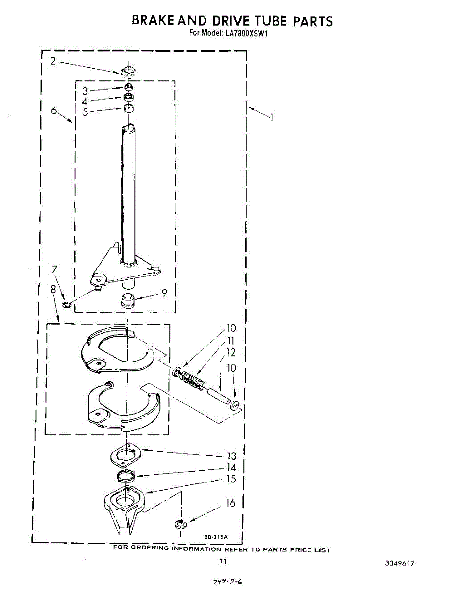 Parts for Whirlpool LA7800XSW1: 09 - Brake And Drive Tube Parts