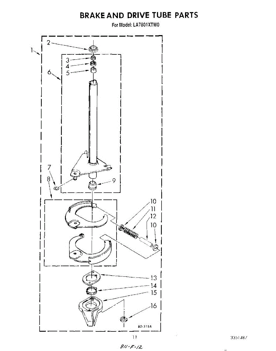 Parts for Whirlpool LA7801XTF0: 09 - Brake And Drive Tube Parts
