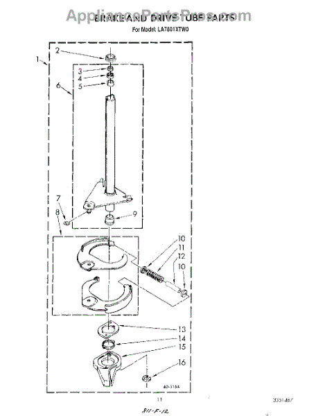 Parts for Whirlpool LA7801XTN0: 09 - Brake And Drive Tube Parts