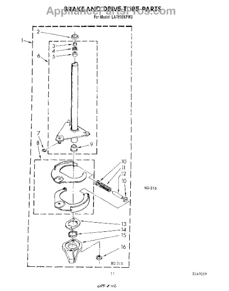 Parts for Whirlpool LA7899XPW3: 09 - Brake And Drive Tube Parts
