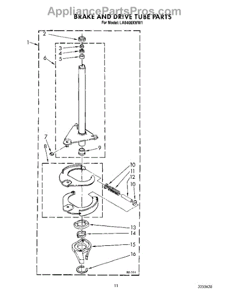 Parts for Whirlpool LA8400XWG1: 09 - Brake And Drive Tube Parts