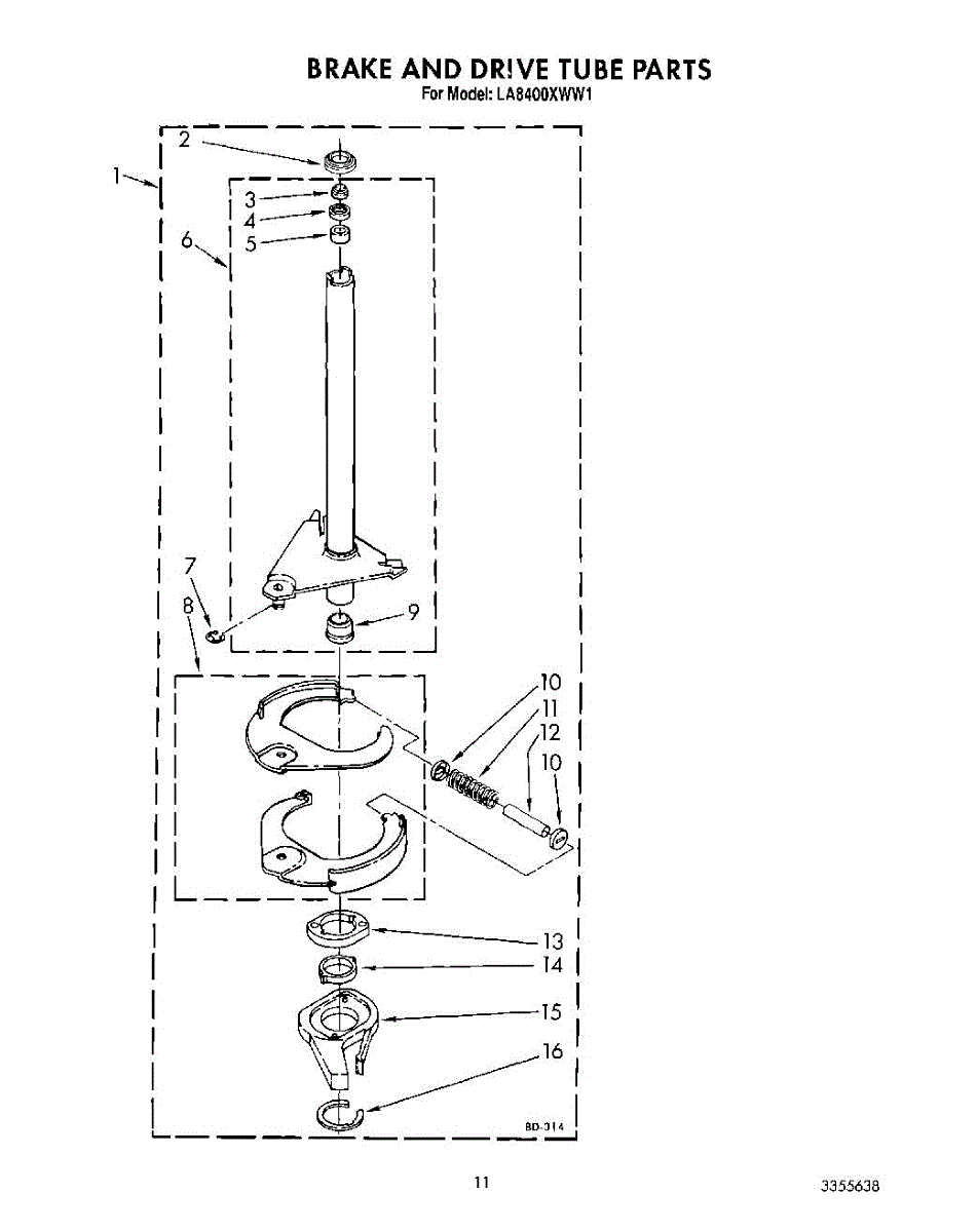 Parts for Whirlpool LA8400XWM1: 09 - Brake And Drive Tube Parts